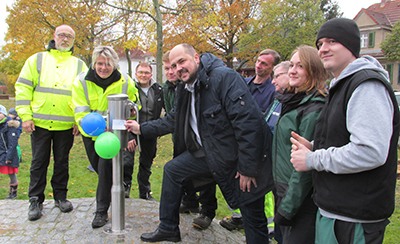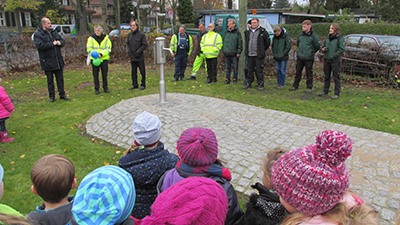 Bezirksstadtrat Frank Bewig hat gemeinsam mit Sünne Espert, Leiterin der Ausbildungsabteilung der Berliner Wasserbetriebe, und allen am Bau Beteiligten den Wasserspielbereich am 13. November 2017 den künftigen Nutzern übergeben.