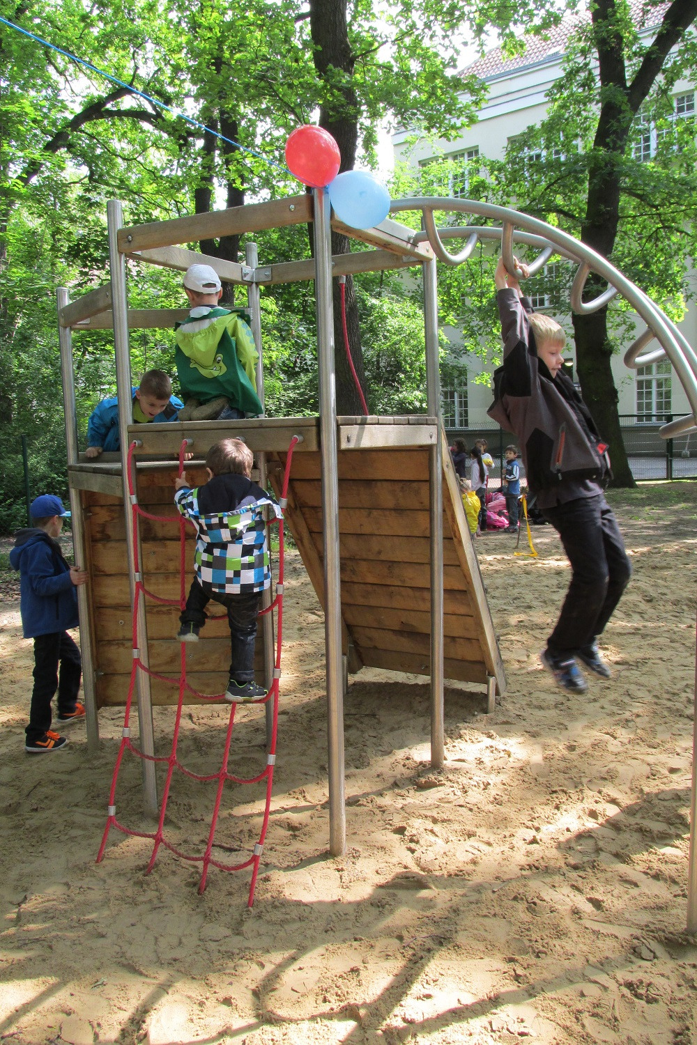 Dank der großzügigen Unterstützung von der BSH Hausgeräte GmbH im Rahmen des Projektes „Raum für Kinderträume“ und dem bezirklichen Spielplatzsanierungsprogramm konnten die Spielgeräte und Bauarbeiten finanziert werden.